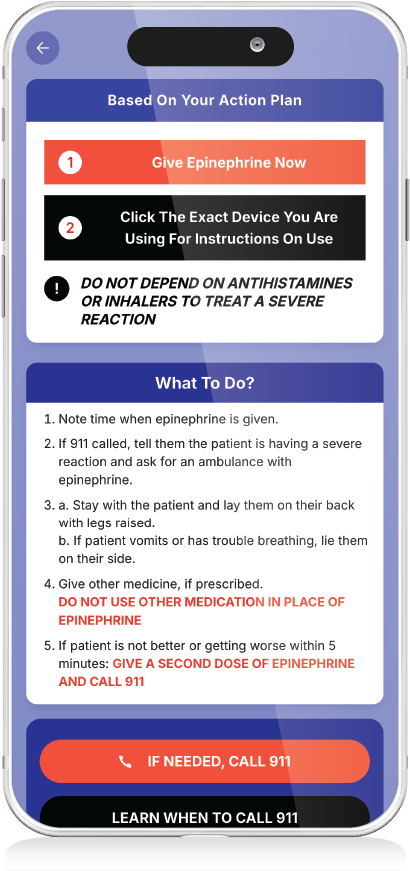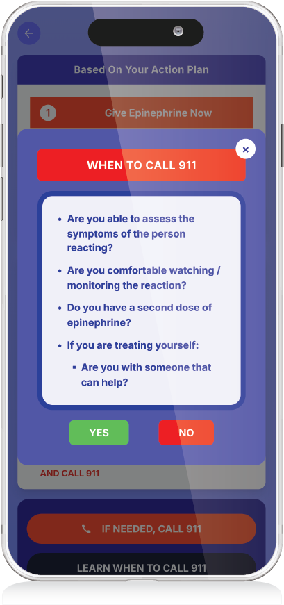 Did you know that calling 911 after epinephrine use may be optional. Our algorithm will guide you through when 911 is needed and when monitoring may be appropriate.