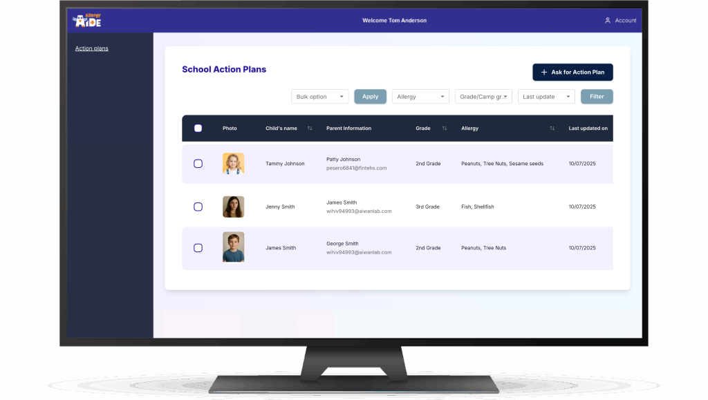 AllergyAIDE streamlines and simplifies the action plan process – making it easier for parents, patients, schools, camps, and daycares to stay prepared and respond with confidence.